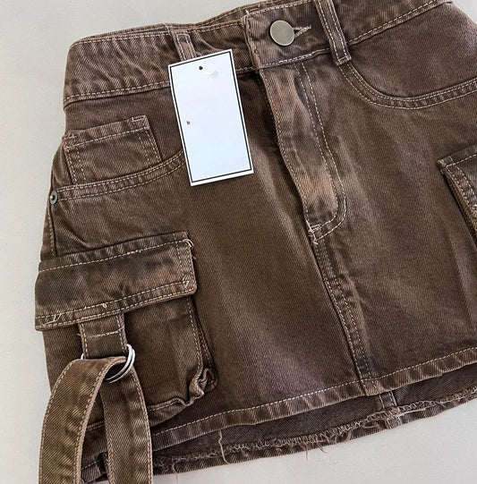 Streetwear Y2k Skirt Vintage Goth Brown Mini Skirt